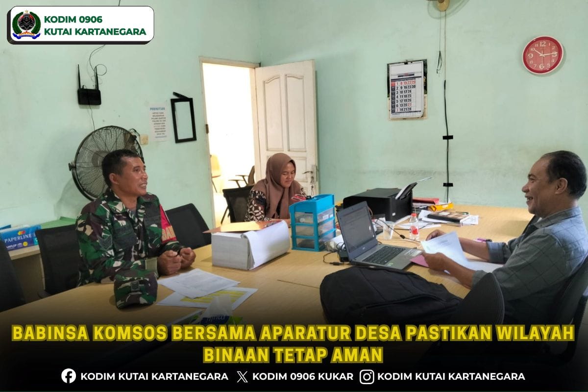 Kutai Kartanegara. cyberpers.id- Dalam menjaga situasi dan kondisi yang ada di wilayah agar selalu tetap aman dan kondusif, anggota Babinsa Koramil 0906-02/Loa Kulu Serka Suparjan melakukan kegiatan komunikasi sosial (komsos) bersama aparatur desa bertempat di kantor BPD Jalan Padat Karya rt 15 Desa Jembayan Kecamatan Loa Kulu, Sabtu 21/2/26.