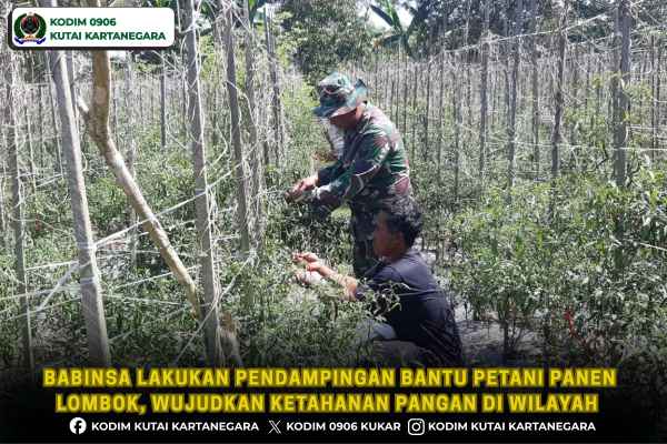 Kutai Kartanegara. cyberpers.id- Anggota Babinsa Koramil 0906-08/Muara Kaman Serka Nurkholis yang selalu aktif di lapangan turut membantu petani yang ada di wilayah binaan dimana Babinsa turut membantu memanen tanaman lombok dilahan milik bapak Edi bertempat di Desa Panca Jaya Kecamatan Muara Kaman, Rabu 22/4/26.