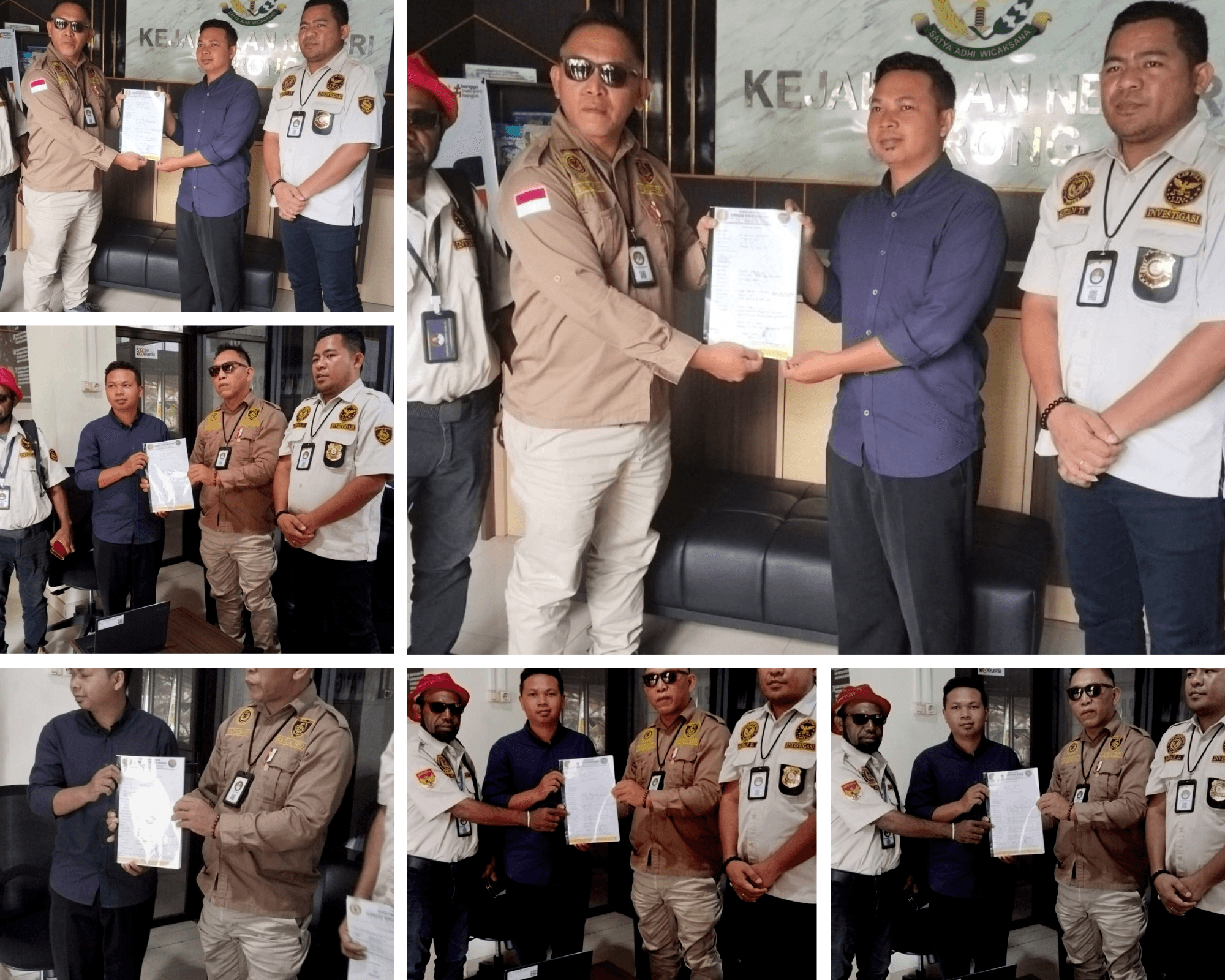 Ketua Umum Lembaga Investigasi Negara, Robi Irawan Wiratmoko, bersama jajaran DPD LIN Papua Barat Daya mendatangi Kejaksaan Negeri Sorong untuk mempertanyakan keabsahan foto penyidikan proyek puskesmas sekaligus menyerahkan laporan baru dugaan korupsi anggaran KONI Sorong Selatan.
