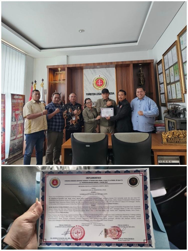 Jakarta — Peta pergerakan hukum nasional memasuki babak baru. Lembaga Investigasi Negara (LIN) dan Yuristen Legal Indonesia (YLI) resmi menjalin kerja sama strategis di bidang hukum, sebuah langkah yang dinilai publik sebagai ancaman serius bagi praktik mafia hukum, ketidakadilan, dan pembungkaman kebenaran.