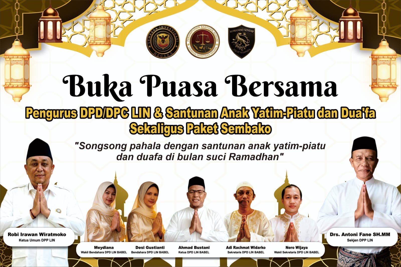 BANGKA BELITUNG ][ cyberoers.id – Bulan suci Ramadan selalu menghadirkan banyak cerita tentang kepedulian dan kebersamaan. Di tengah suasana penuh berkah ini, jajaran pengurus Lembaga Investigasi Negara (LIN) Provinsi Kepulauan Bangka Belitung berinisiatif menggelar kegiatan buka puasa bersama sekaligus santunan bagi anak yatim-piatu dan kaum duafa.