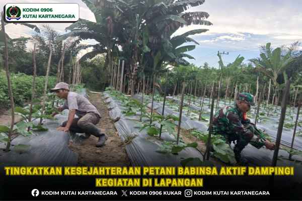 Kutai Kartanegara. cyberpers.id- Dalam mendukung meningkatkan kesejahteraan petani yang ada di wilayah binaan, anggota Babinsa Koramil 0906-08/Muara Kaman Serma Makbul melakukan pendampingan kepada petani terong yang berada di wilayah binaan tepatnya rt 08 Desa Muara Kaman Ulu Kecamatan Muara Kaman, Senin 20/4/26.